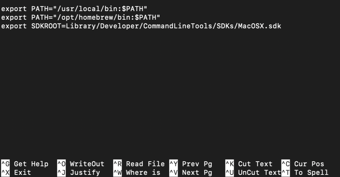 nano ~/.zshrc아래와같이 SDKROOT 환경변수 설정