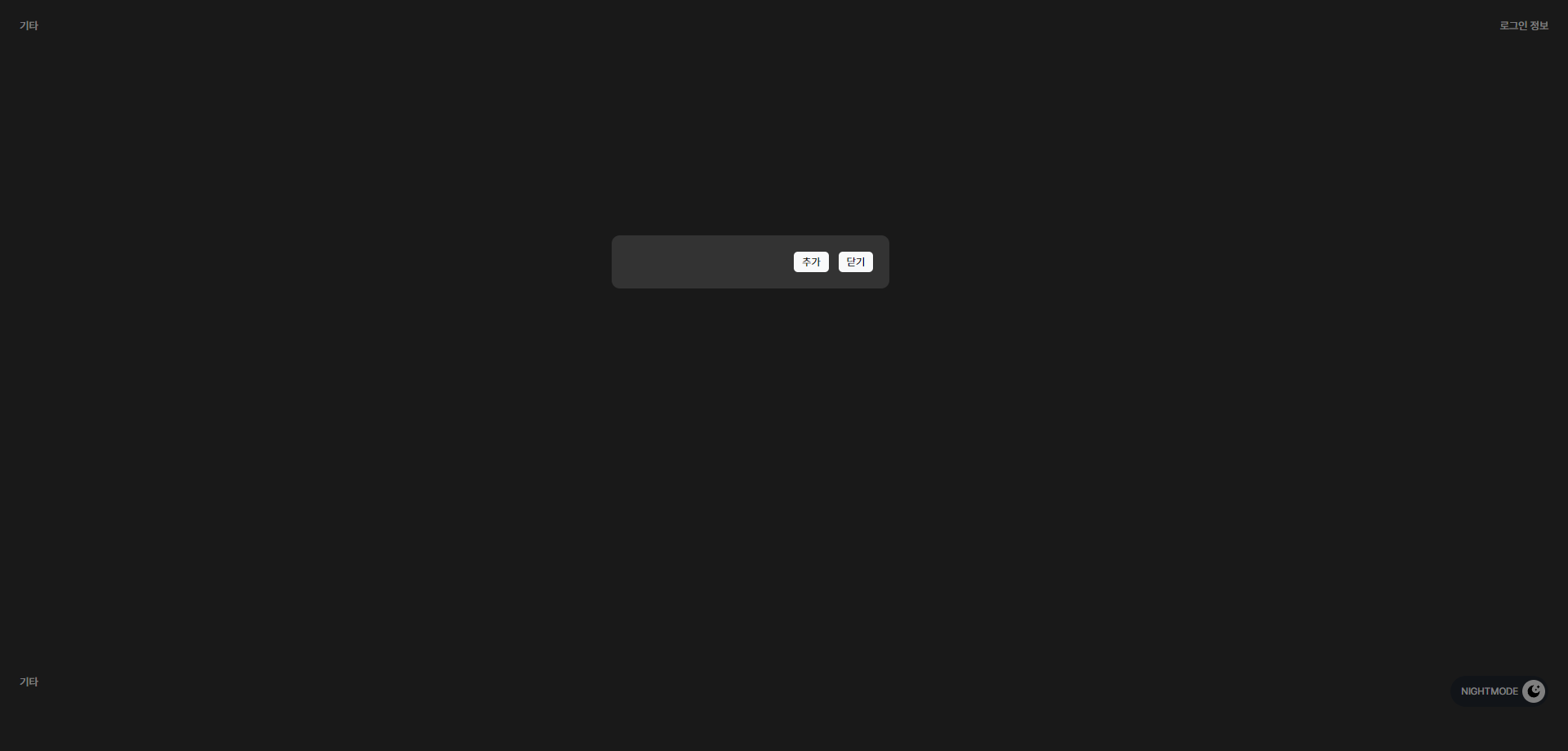import React from 'react'; import Draggable from 'react-draggable'; import './DraggablePopupComponent.scss' import {observer} from "mobx-react"; import themeStore from "../../store/ThemeStore.ts"; const DraggablePopup = observer(({isOpen, onClose}) => { const {isDarkMode} = themeStore return ( <div> {isOpen && ( <div className="popup-overlay"> <Draggable> <div className={`popup-content ${isDarkMode ? 'isDarkMode' : ''}`}> <div className={`popup-button-container ${isDarkMode ? 'isDarkMode' : ''}`}> <button>추가</button> <button onClick={onClose}>닫기</button> </div> </div> </Draggable> </div> )} </div> ); }); export default DraggablePopup;이후 ContextMenu 팝업에서 추가 버튼을 누르면 popup을 열기위해 추가 버튼을 누르면 useState로 값을 바꾸며