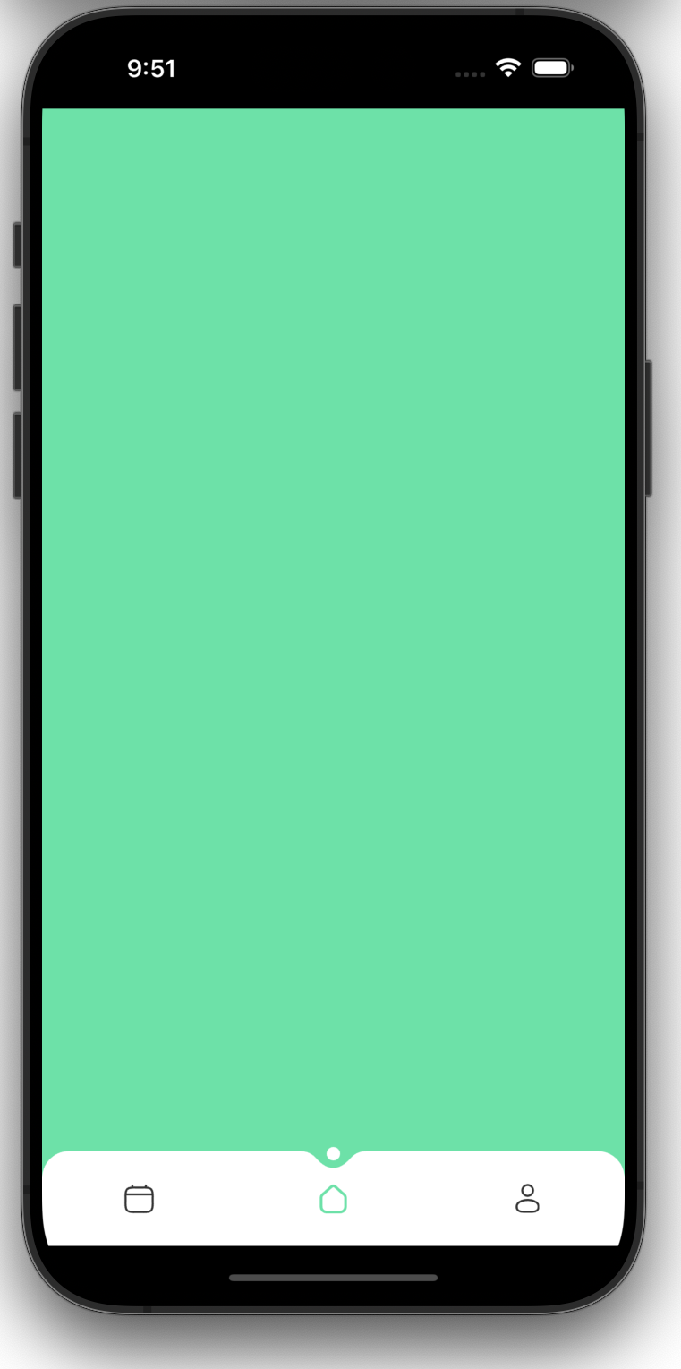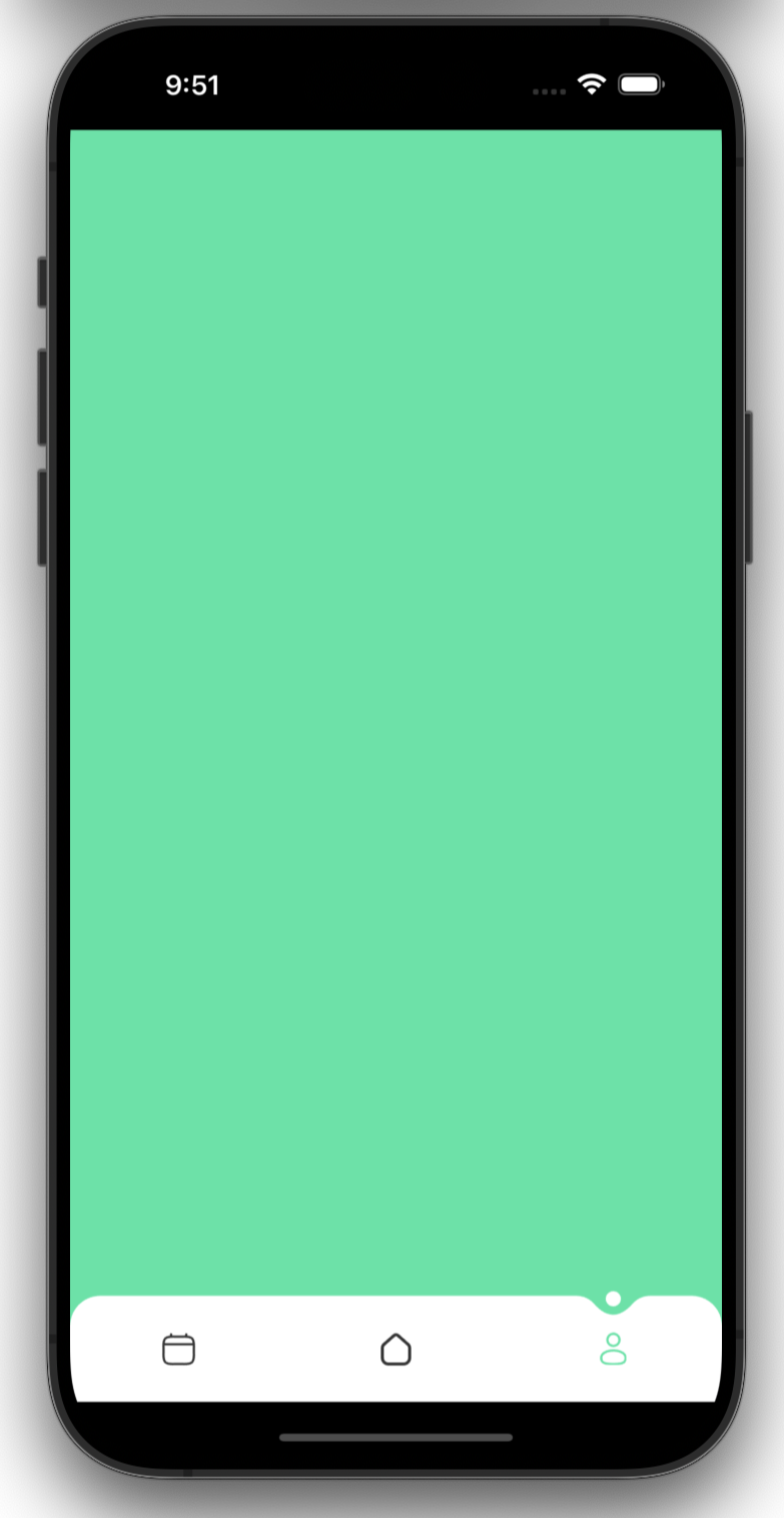 class _MyAppState extends State<MyApp> { @override Widget build(BuildContext context) { return MaterialApp( debugShowCheckedModeBanner: false, home: SafeArea( child: Scaffold( backgroundColor: mint, // body: Home(), bottomNavigationBar: BottomNavigation() ), ), ); } }그럼 이렇게 누른 탭에 애니메이션이 적용된다.