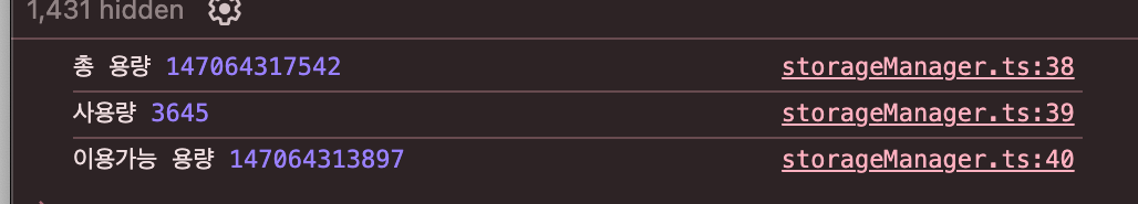 if (quota.usageDetails?.indexedDB !== undefined) { console.log('IndexedDB 사용 공간 (Bytes):', quota.usageDetails.indexedDB); }그럼 이제 스토리지 용량을 가져오는 함수를 estimate를 활용하여 구현