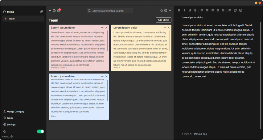 많은 사람들이 일할때 좀 더 메모 관리를 편하게 했으면 좋겠다는 생각과 보안이 중요한 회사의 경우에는 메모 관리가 더욱 힘들 것 같다는 생각으로 개발하였습니다.
