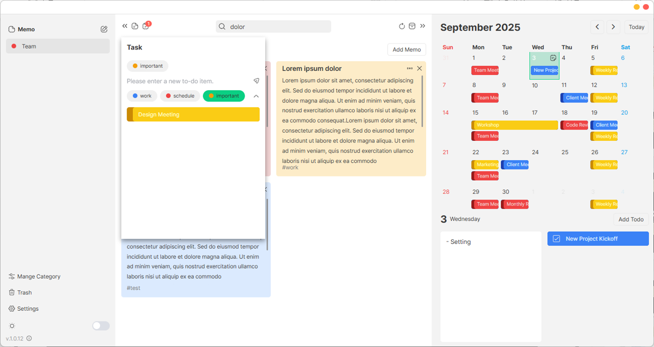 윈도우의 스티커메모를 쓰다가 관리가 불편해서 좀 더 상위호환 느낌을 살렸다.