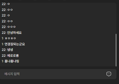 이러면 서로 메시지가 정상적으로 주고 받을 수 있다.