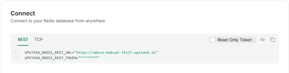 import {Redis} from "@upstash/redis"; export const redis = new Redis({ url: process.env.UPSTASH_REDIS_REST_URL!, token: process.env.UPSTASH_REDIS_REST_TOKEN!, })