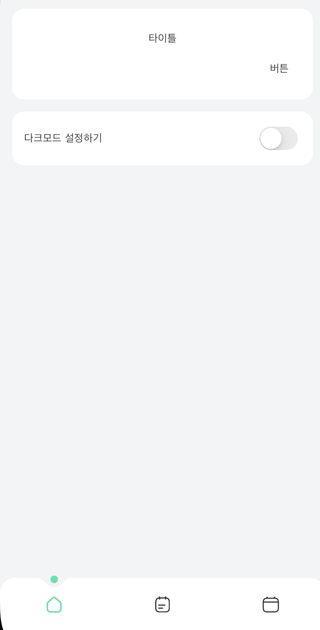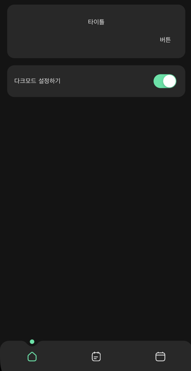 @override Widget build(BuildContext context) { return ChangeNotifierProvider( create: (context) => ThemeProvider() , child: Consumer<ThemeProvider>( builder: (context, themeProvider, child) { return MaterialApp( debugShowCheckedModeBanner: false, home: SafeArea( child: Scaffold( backgroundColor: bgColor, body: mainPages[selectBtn], bottomNavigationBar: BottomNavigation( selectedBtn: selectBtn, onItemTapped: _onItemTapped, ) ), ), ); } ), );결과적으로 모든 색상부분을 컬러를 넣고, consumer widget을 설정해주어 다시 재랜더링을 시켜준다.
