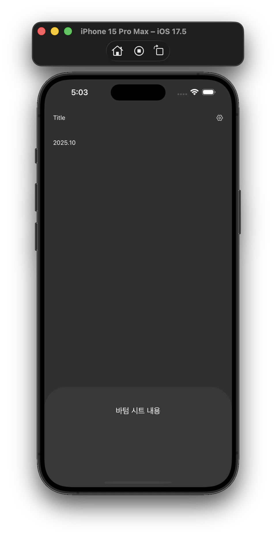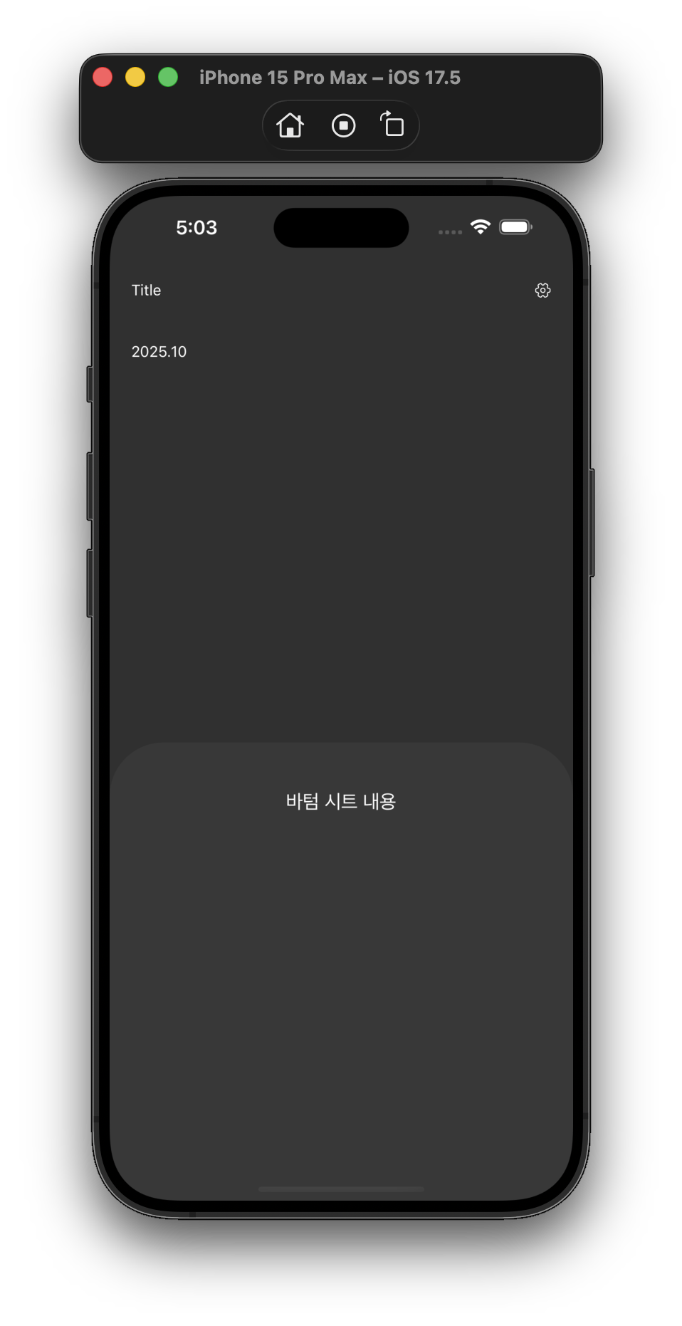 return ( <GestureHandlerRootView style={{ flex: 1 }}> <AppView header={true} style={styles.container}> <AppText>{formatDateLocale(today, 'YYYY.MM')}</AppText> <BottomTodoSheet/> </AppView> </GestureHandlerRootView> );그럼 이렇게 제스처를 어느정도 하느냐에따라서 snapPoint를 설정한 크기만큼 늘어난다.